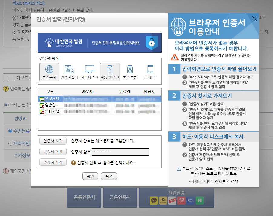 하지만 인테넷에서는 본인 인증으로만 발급이 가능합니다.