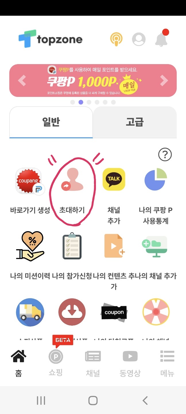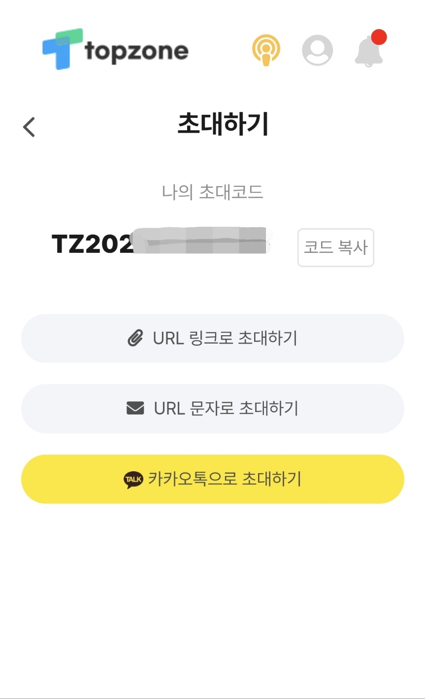 탑존 포인트앱에 들어가면 초대하기가 있습니다.